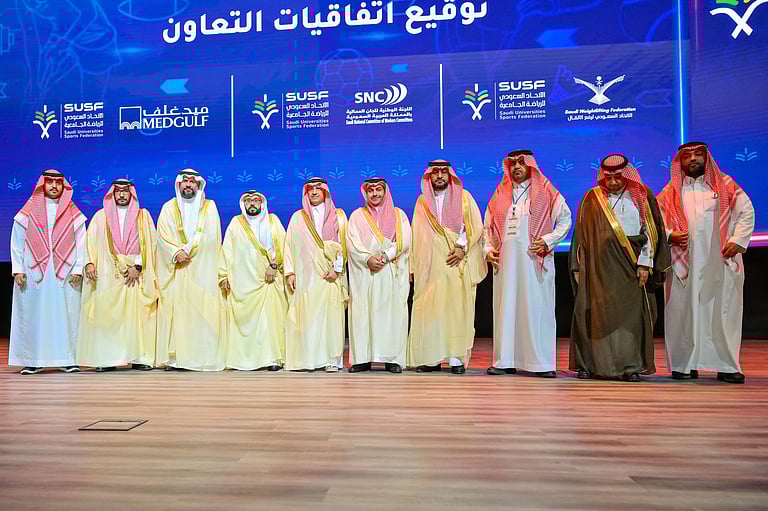وعقب الحفل، وقّع رئيس الاتحاد السعودي للرياضة الجامعية الأستاذ الدكتور خالد المزيني، اتفاقيات تعاون مع الاتحاد السعودي لرفع الأثقال، وميد غلف للتأمين، واللجنة الوطنية للجان العمالية.