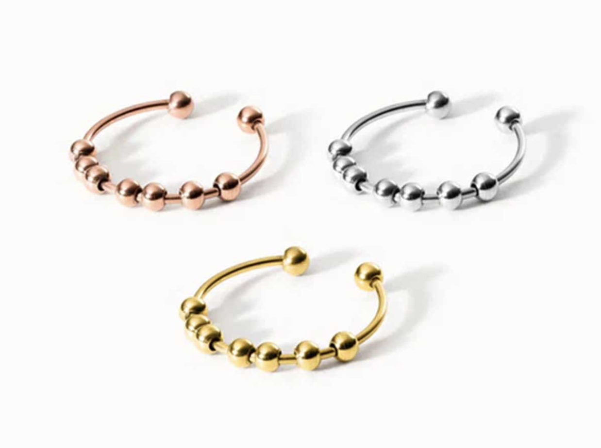 ويعمل الخاتم، الذي يلبس على إصبعين، من خلال الأحاسيس اللمسية، حيث يمكن تدوير عناصره المتحركة لتعزيز التركيز وتهدئة الأعصاب.