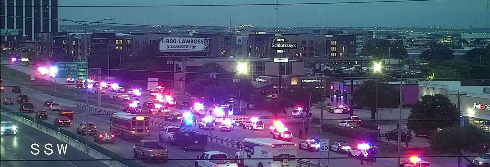 وذكرت قناة “فوكس4” أن المهاجم هو رجل أبيض كان على سطح مبنى وأطلق النار على نفسه عندما اقترب منه عناصر إنفاذ القانون.