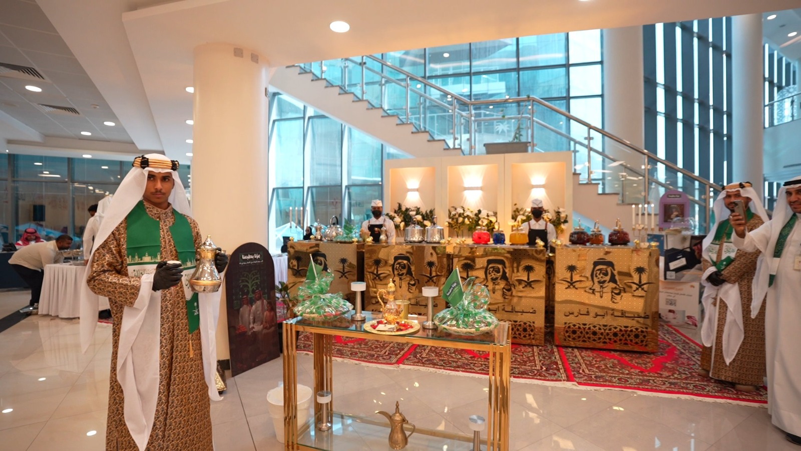 وتوشّحت أركان المكتب بألوان الوطن، حيث شارك الموظفون والمراجعون والزوار في فعاليات متنوعة، شملت ركن الضيافة الذي قدّم القهوة والمأكولات الشعبية، وركن العطور والبخور، إضافةً إلى ركن التوزيعات التي حملت شعار اليوم الوطني، وركن التصوير التذكاري. كما ألهبت العرضة السعودية مشاعر الحضور وأضافت طابعًا تراثيًا أصيلًا على الأجواء.