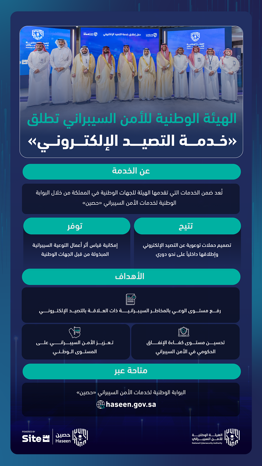 الهيئة الوطنية للأمن السيبراني تطلق “خدمة التصيد الإلكتروني” للجهات الوطنية