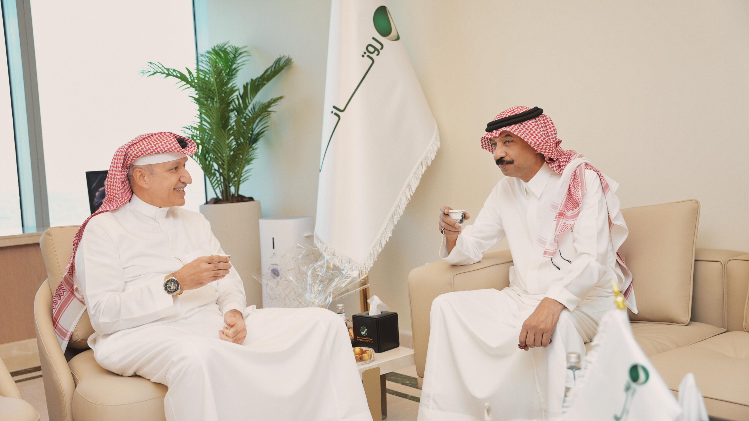 عبادي الجوهر خلال التقائه مع أ.سالم الهندي بمقر روتانا الجديد يبارك للأمير الوليد بن طلال ويمتدح معالي تركي آل الشيخ