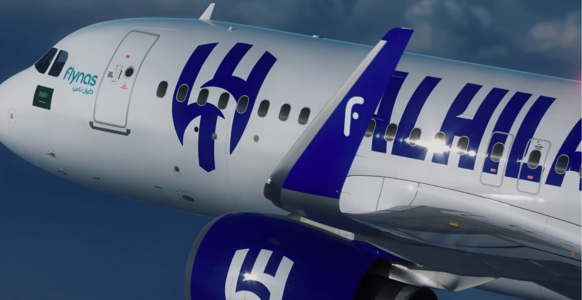 أزيح الستار رسميا اليوم عن تصميم طائرة الهلال الخاصة المقدمة من طراز A320neo بصبغة خاصة بشعار نادي الهلال باسم XY-HFC .
