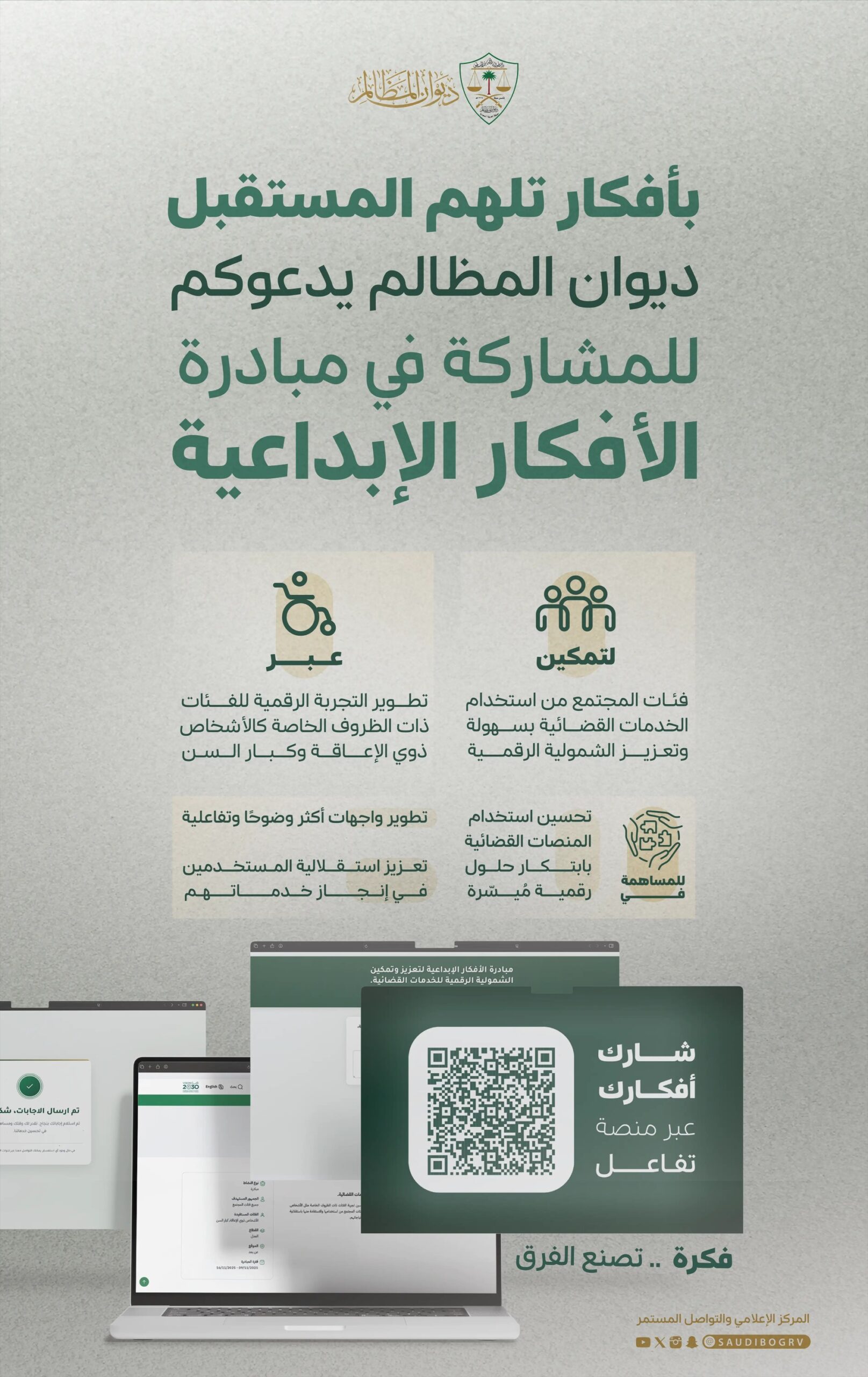 ديوان المظالم يدعو للمشاركة بالأفكار الإبداعية