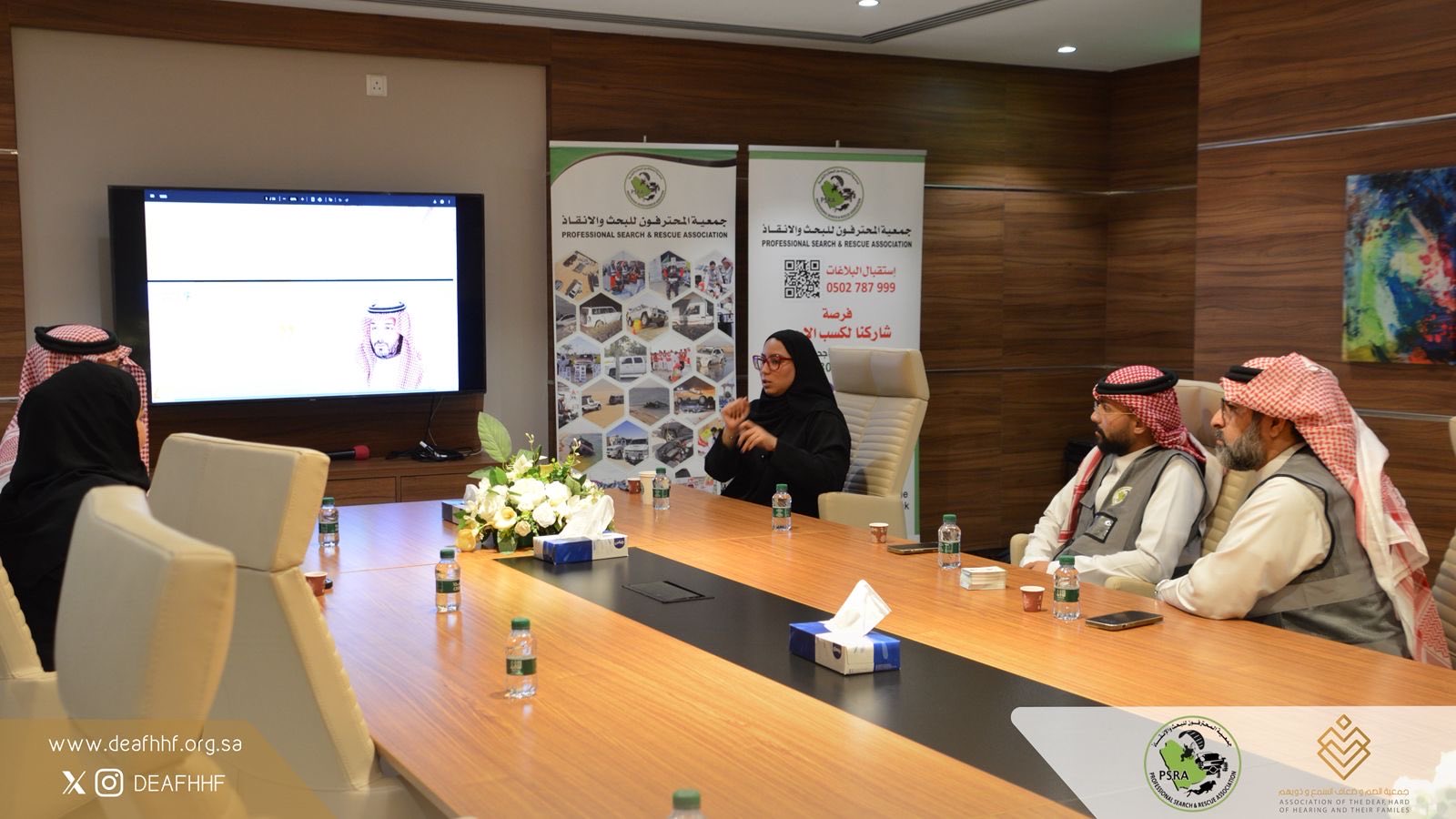 توصلت جمعية الصم وضعاف السمع وذويهم وجمعية المحترفون للبحث والانقاذ إلى شراكة مجتمعية تتضمن تقديم برامج توعوية في الإنقاذ والسلامة وترجمة محتواها بلغة الإشارة وتوفير مترجمي لغة إشارة لتقديم أساليب وطرق توعوية موجهة لفئة الصم وضعاف السمع بطرق السلامة من الأخطار والتعامل الصحيح معها إلى جانب تدريب الأفراد بالتعامل مع الأزمات والكوارث وتقديم خدمات الإستغاثة والبحث والانقاذ بالتعاون مع مختلف الجهات الحكومية.