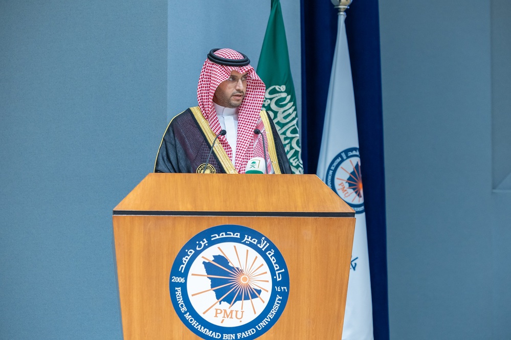 وأضاف سموه: نحتفل اليوم بتخريج دفعة جديدة من طلاب جامعة الأمير محمد بن فهد، برعاية كريمة من سمو أمير المنطقة الشرقية، الذي يجسد حضوره دعماً متواصلاً لمسيرة التعليم والتنمية في المنطقة، وفي هذه المناسبة، نستذكر بكل وفاء مؤسس الجامعة، سيدي صاحب السمو الملكي الأمير محمد بن فهد بن عبدالعزيز – رحمه الله – الذي وضع رؤية رائدة تقوم على تمكين الإنسان، وبناء صرح تعليمي يواكب العصر ويخدم الوطن؛ نسأل الله أن يجعل ما قدمه في ميزان حسناته.
