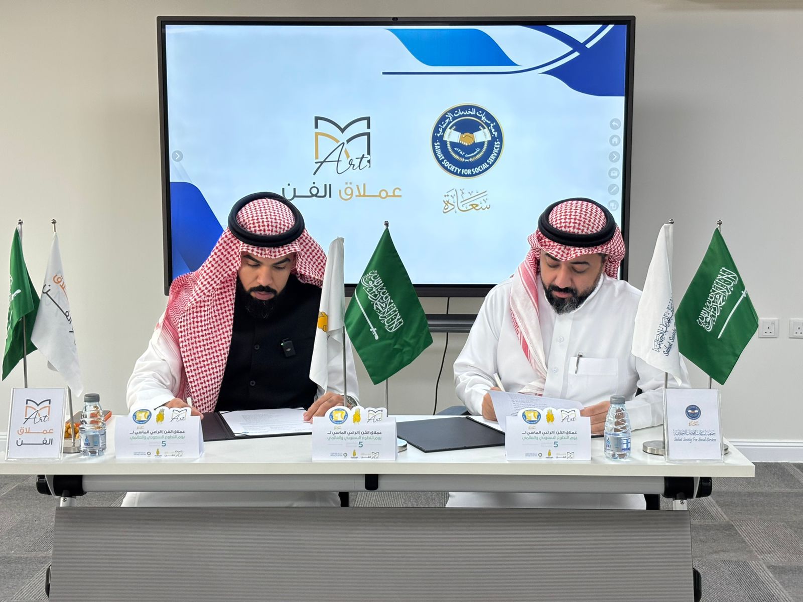 وقد وقع الاتفاقية كل من الأستاذ ماهر الداؤود، نائب المدير التنفيذي للبرامج والأنشطة، والأستاذ فاضل العوى مدير مؤسسة عملاق الفن للدعاية والإعلان.