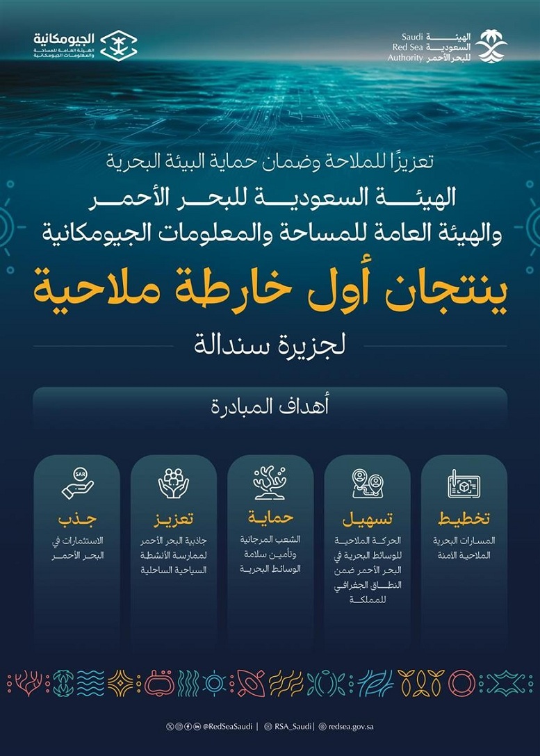 الهيئة السعودية للبحر الأحمر والجيومكانية ينتجان أول خارطة ملاحية لجزيرة سندالة