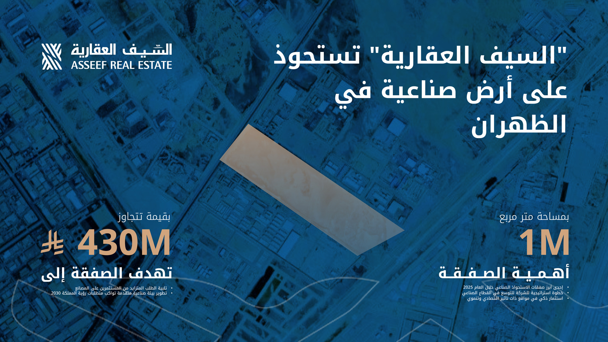 “السيف العقارية” تستحوذ على أرض صناعية في الظهران بمساحة مليون متر مربع وبقيمة تتجاوز 430 مليون ريال
