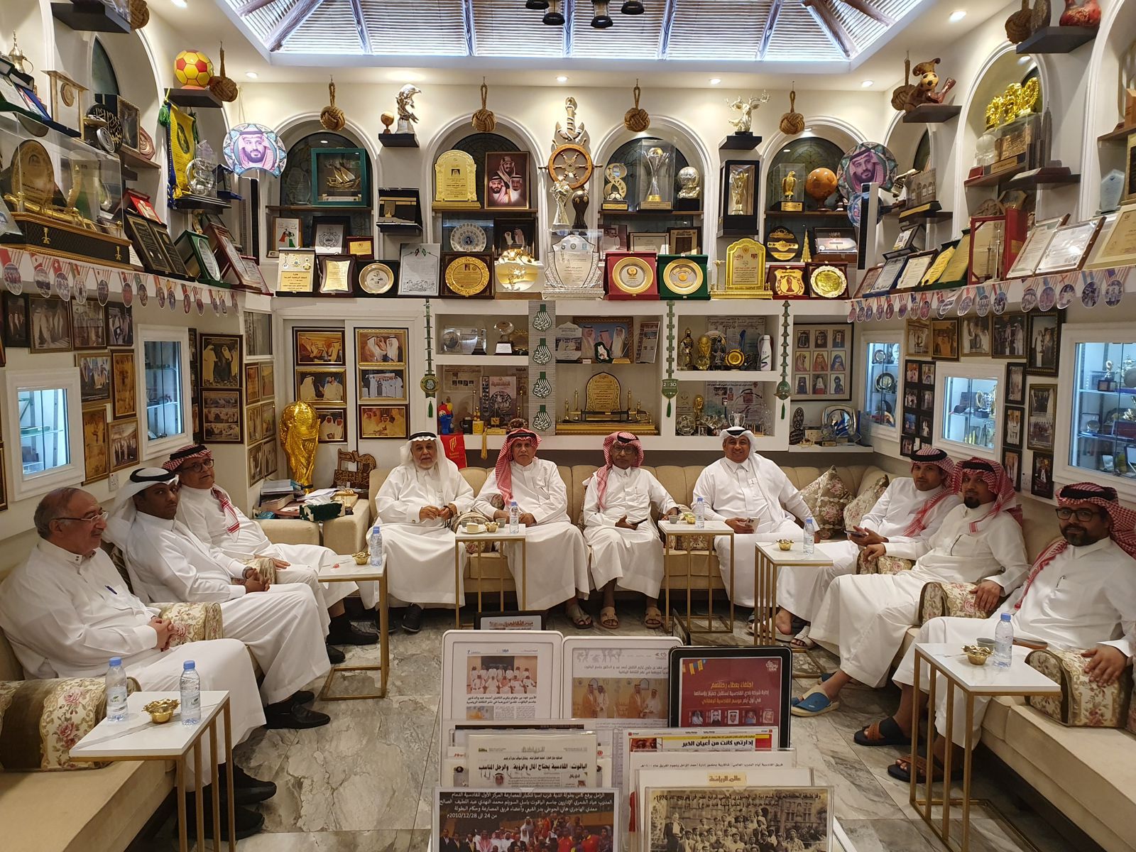 وفي ختام الزيارة، قام الحضور بجولة في الديوانية الرياضية الخاصة بالجوائز والدروع والشهادات والأوسمة التي تُوج بها الدكتور الياقوت خلال مشواره الرياضي والإعلامي، إلى جانب استعراض عدد من الصحف والمواد التوثيقية التي تحكي مسيرة حافلة بالنجاحات.