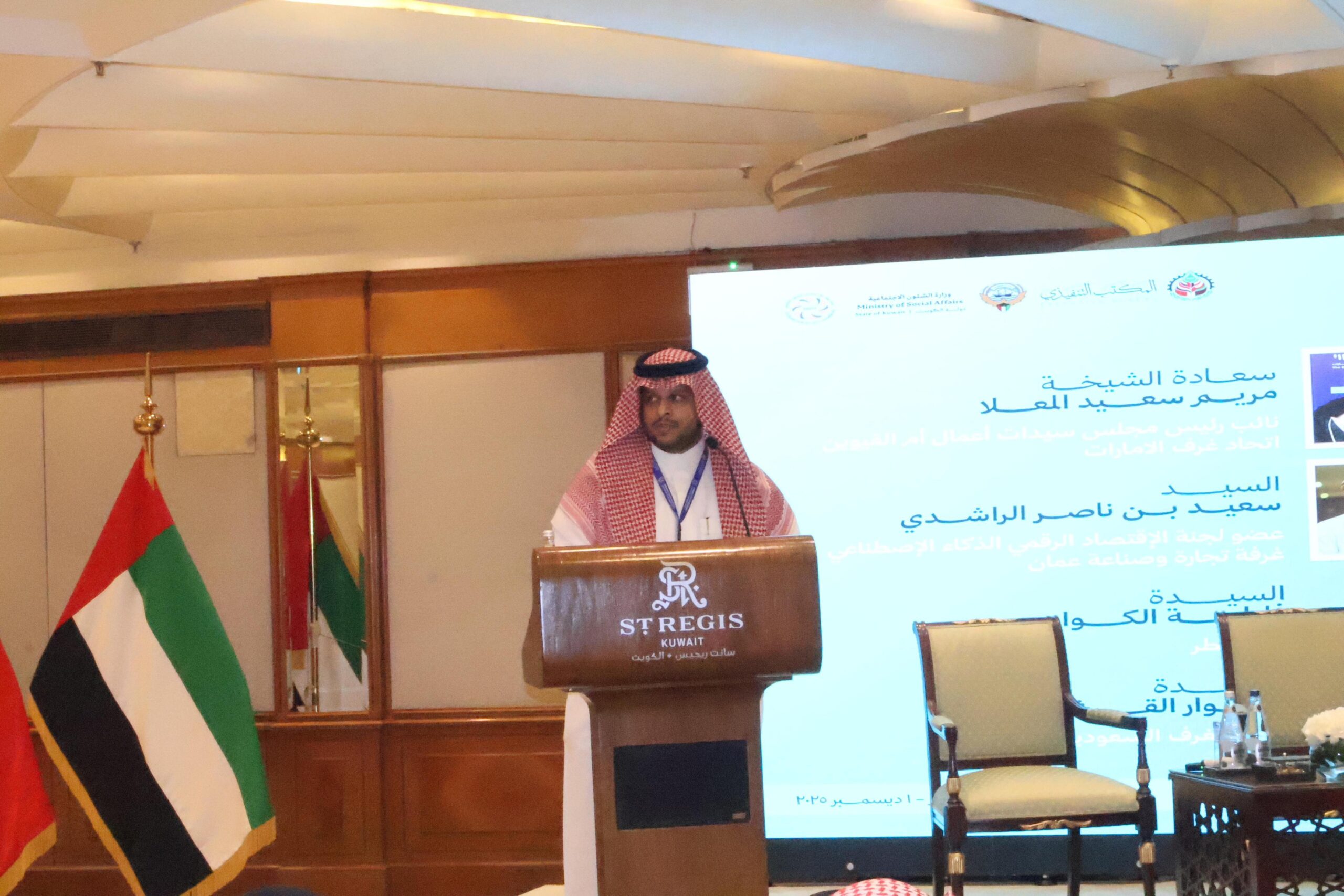 شارك ناصر بن صالح الشهري المتخصص بالاتصال بالمؤسسي والمسؤولية الاجتمتعية في أعمال الملتقى الخليجي الأول لبناء قدرات ومهارات أصحاب المشاريع المنزلية، الذي أُقيم مؤخراً في دولة الكويت، خلال الفترة 30 نوفمبر – 1 ديسمبر, 2025, بتنظيم من وزارة الشؤون الاجتماعية بدولة الكويت والمكتب التنفيذي لمجلس وزراء العمل بدول مجلس التعاون، بالتعاون مع اتحاد الغرف الخليجية، وبحضور معالي الدكتورة أمثال الحويلة، وزيرة الشؤون الاجتماعية وشؤون الأسرة والطفولة بدولة الكويت، وسعادة مساعد أمين سعادة أ. نوره السالم، الأمين العام المساعد لاتحاد الغرف الخليجية