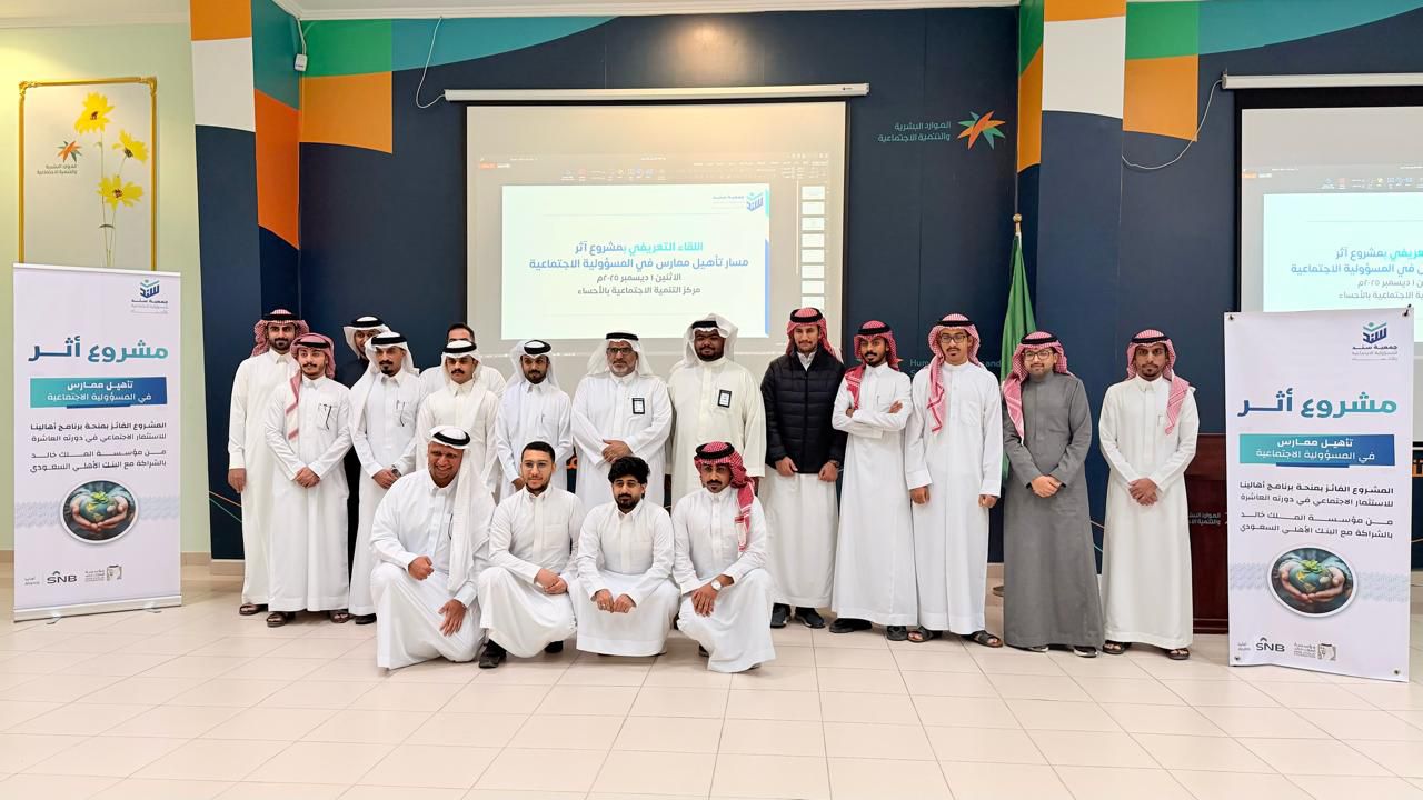 انطلق صباح اليوم الاثنين ٢٠٢٥/١٢/١م في مركز التنمية الاجتماعية بالأحساء اللقاء التعريفي لمشروع “أثر” الذي تنفذه جمعية سند للمسؤولية الاجتماعية بالأحساء والفائز بمنحة برنامج أهالينا في دورته العاشرة من مؤسسة الملك خالد وبالشراكة مع البنك الأهلي السعودي ، بحضور المشاركين الذين جرى قبولهم في البرنامج ، وذلك تمهيدًا للبدء في مراحل التدريب والعمل الميداني ضمن خطة المشروع.