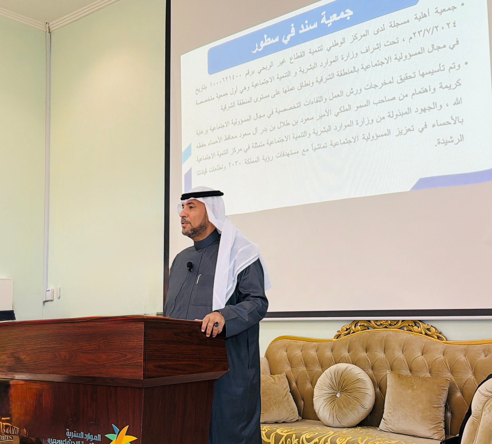 جمعية سند بالأحساء تعقد لقاءً تعريفيًا بمشروع “آثر” لتأهيل ممارسين في المسؤولية الاجتماعية