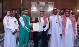 سمو محافظ الأحساء يكرّم القريع الحاصل على برونزيتي بطولة العالم لألعاب القوى للأساتذة
