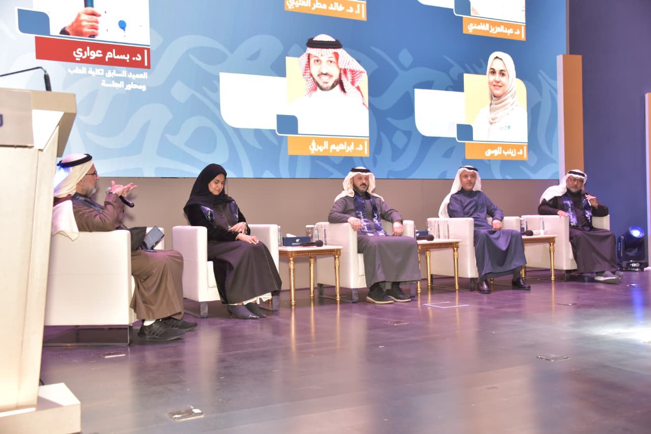 وفي كلمته، أكد رئيس الجامعة الأستاذ الدكتور فهد بن أحمد الحربي أن الاحتفال باليوبيل الذهبي لكلية الطب هو احتفاء بمسيرة بناء ممتدة، وصناعة الطبيب والإنسان معًا، مشيرًا إلى أن الكلية شكّلت أحد الأعمدة الراسخة في مسيرة الجامعة، وأسهمت على مدى خمسة عقود في تطوير التعليم الطبي، وتعزيز البحث العلمي، والارتقاء بالخدمات الصحية، ضمن منظومة أكاديمية وسريرية متكاملة وأوضح أن جامعة الإمام عبدالرحمن بن فيصل، وبتكامل أدوارها التعليمية والبحثية والمجتمعية، تسير بثباتٍ مع مستهدفات رؤية السعودية 2030، مؤكدًا أن كلية الطب كانت ولا تزال نموذجًا للالتزام والتميّز، بفضل كوادرها وقياداتها ورؤيتها الطموحة التي تستشرف المستقبل بثقة.