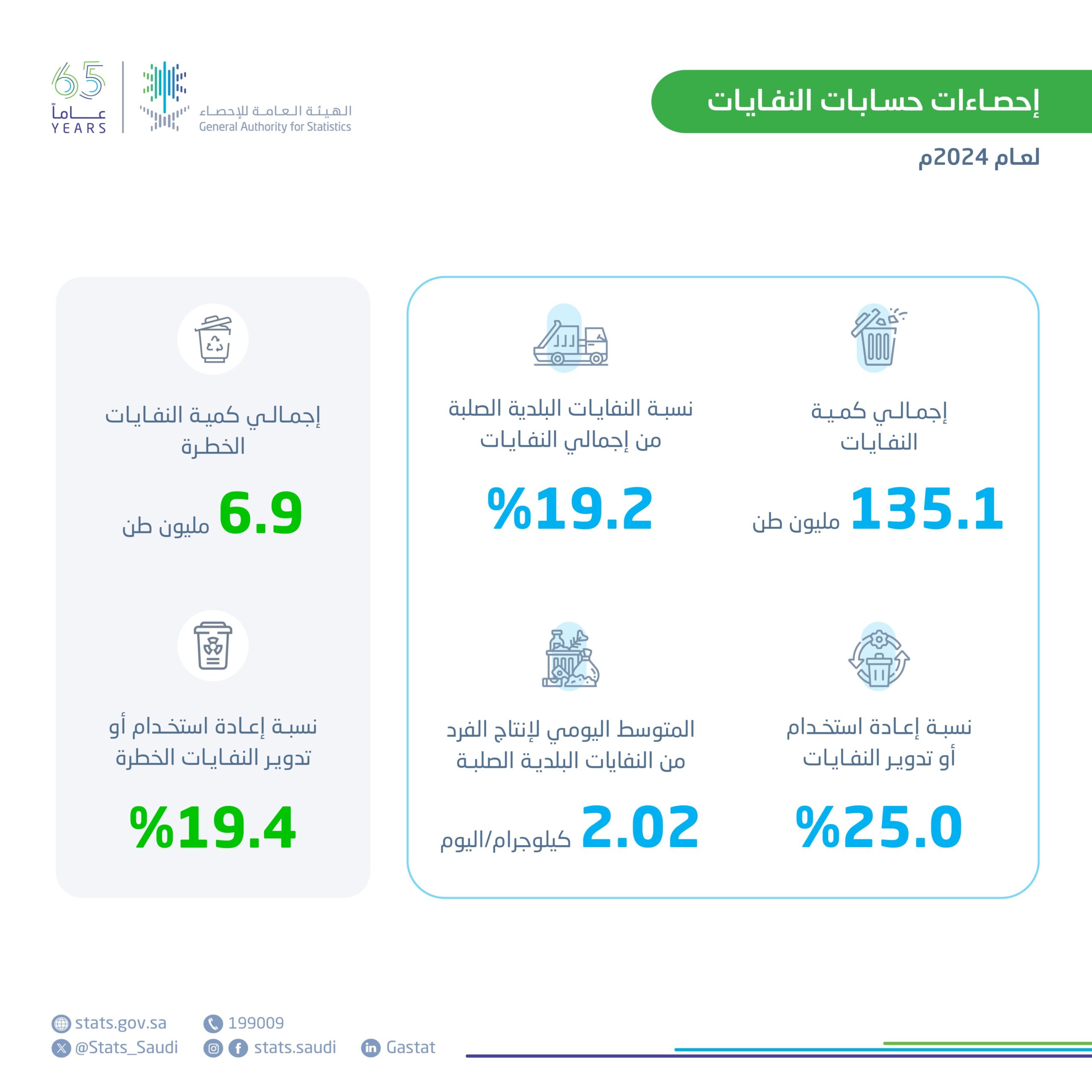 “الإحصاء”: تنشر إحصاءات النفايات في المملكة لعام 2024