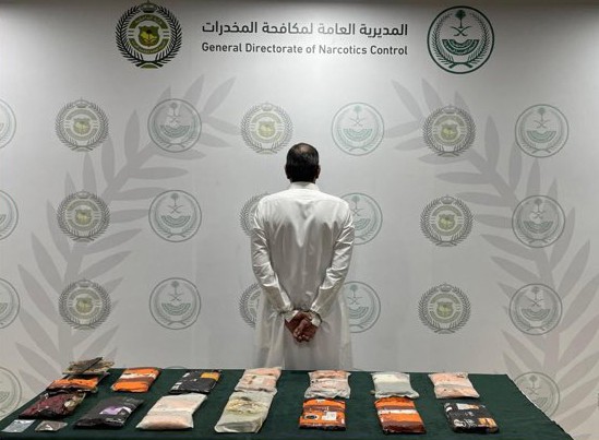 قبضت المديرية العامة لمكافحة المخدرات على مواطن بالمنطقة الشرقية لترويجه (14) كيلوجرامًا من مادة الحشيش المخدر ومادة الإمفيتامين المخدر، وجرى إيقافه واتخاذ الإجراءات النظامية بحقه، وإحالته إلى النيابة العامة.
