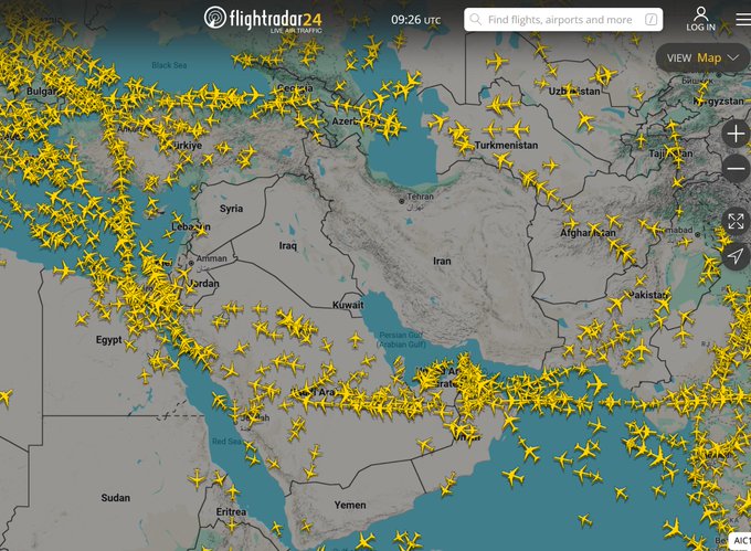صورة تكشف عن ربكة جوية واسعة بعد اندلاع الحرب في المنطقة