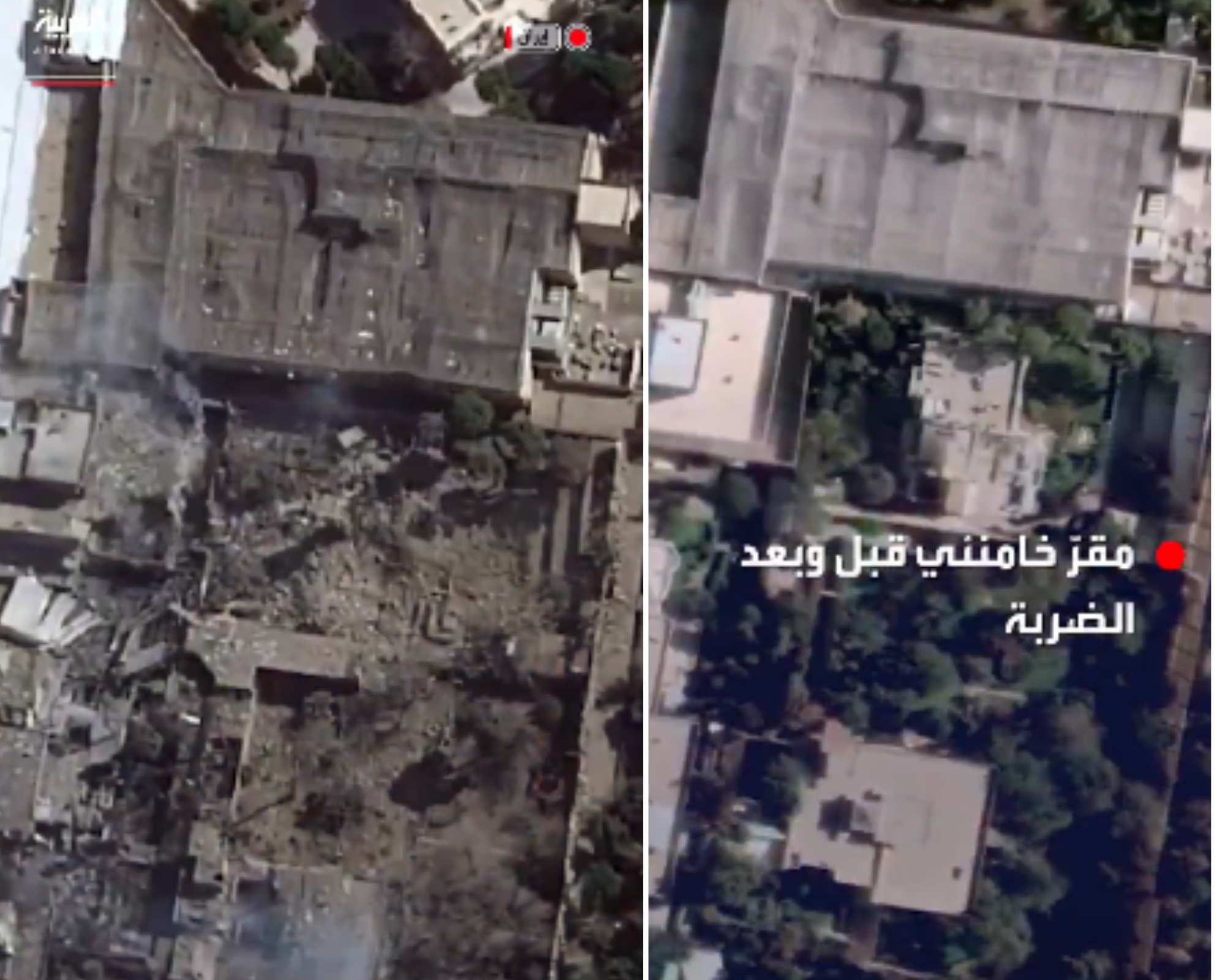 بالفيديو: صور أقمار اصطناعية تكشف مقرّ خامنئي في طهران قبل القصف وبعده