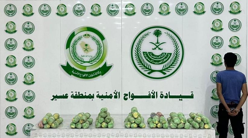 دوريات الأفواج الأمنية بمنطقة عسير تقبض على شخص لترويجه (13) كيلو جرامًا من نبات القات المخدر
