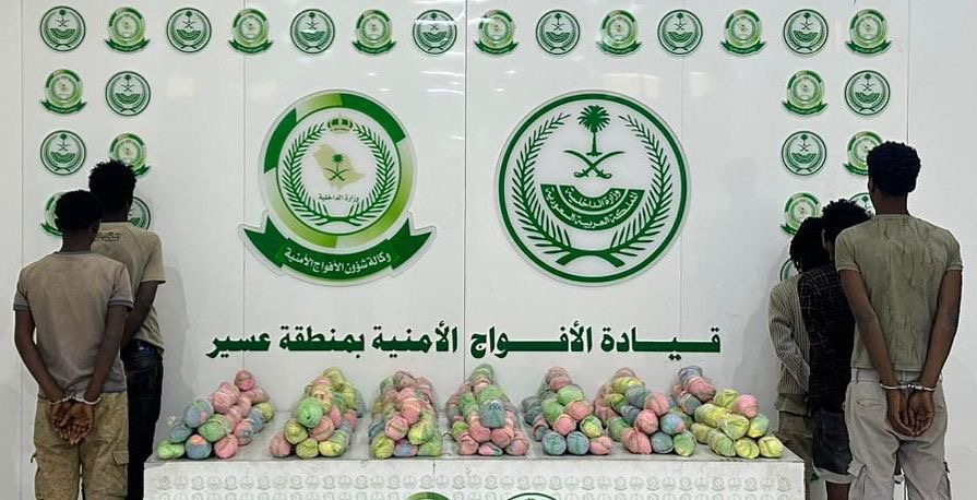قبضت دوريات الأفواج الأمنية بمنطقة عسير على (5) مخالفين لنظام أمن الحدود من الجنسية الإثيوبية لتهريبه (30) كيلو جرامًا من نبات القات المخدر بمحافظة الفرشة، وتم إيقافهم واتخاذ الإجراءات النظامية بحقهم, وإحالتهم لجهة الاختصاص.