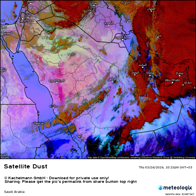 قال أستاذ المناخ عبدالله المسند إن أجواء نادرة تشهدها المنطقة مساء اليوم، حيث تجتاح عواصف رعدية قوية أجزاء واسعة من الشرق الأوسط.