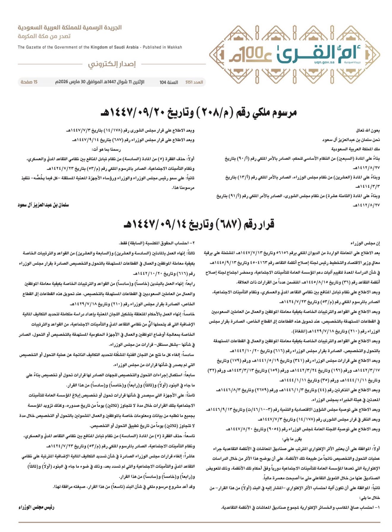 أصدرت الجهات المختصة قرارًا رسميًا شمل عدة تغييرات مهمة على أنظمة العمل والتقاعد في المملكة:
