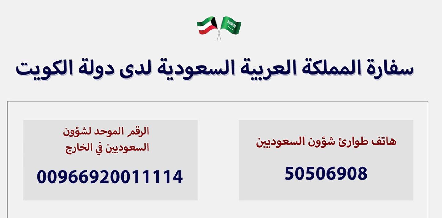 دعت السفارة السعودية في الكويت، المواطنين السعوديين إلى الالتزام بالتعليمات الصادرة من السلطات الرسمية في الكويت.