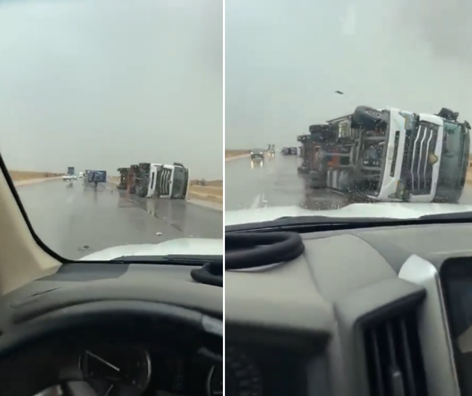 تداول ناشطون مقطعًا يوثق تأثير الرياح الهابطة على عدد من الشاحنات في طريق القصيم – المدينة، في مشهد لافت يعكس قوة هذه الظاهرة الجوية.
