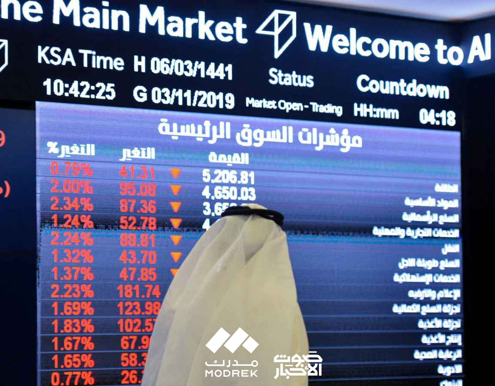 يُذكر أن مؤشر السوق السعودية “تاسي” أنهى تداولات الأسبوع على تراجع 444.57 نقطة بنسبة 3.8%، ليغلق عند مستوى 11,109.6 نقطة مقارنة بالأسبوع السابق.