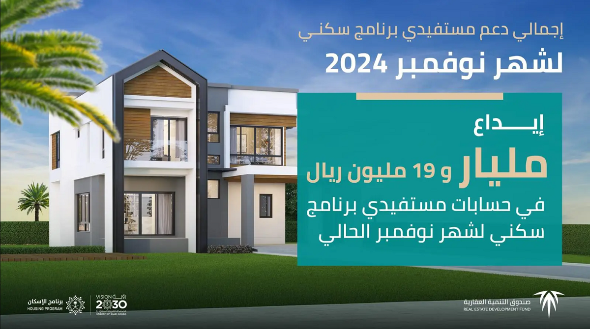أودع صندوق التنمية العقارية اليوم، مليارًا وتسعة عشرة مليون ريال في حسابات مستفيدي برنامج سكني من وزارة البلديات والإسكان والصندوق العقاري لشهر نوفمبر 2024.
